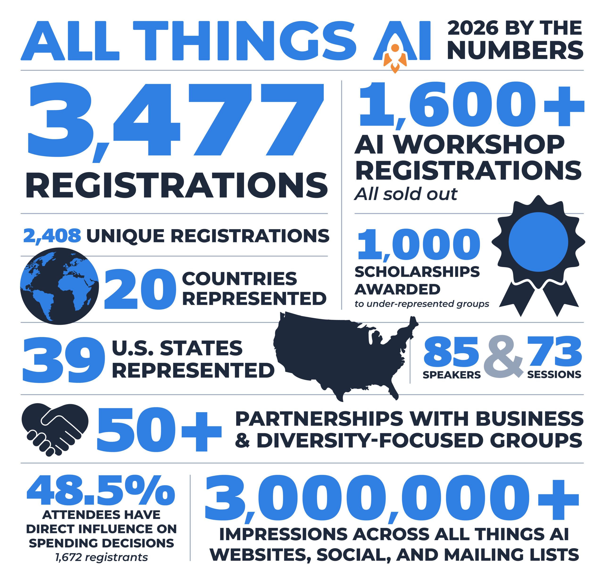 # of impressions across All Things AI websites, social, and mailing lists (3,000,000+)